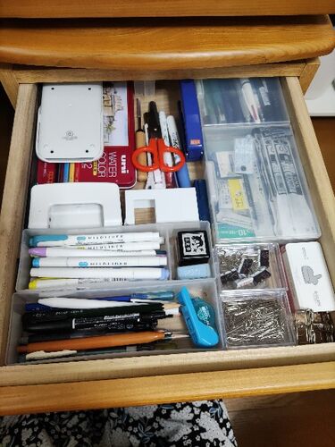 僕の机のひきだしは文房具置き場になっています。 今日はこの中から収納用具についてお話しします。 ストックにはがきケース 旅行ケースに細かいものを 文房具専用じゃなくていい