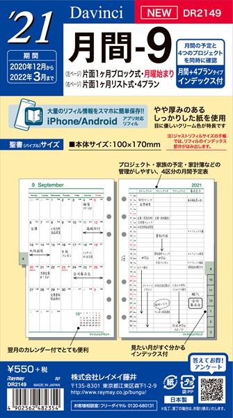 このリフィルは左が月間ブロック、右が月間リストになっており、両方を一度に見渡すことができます。
